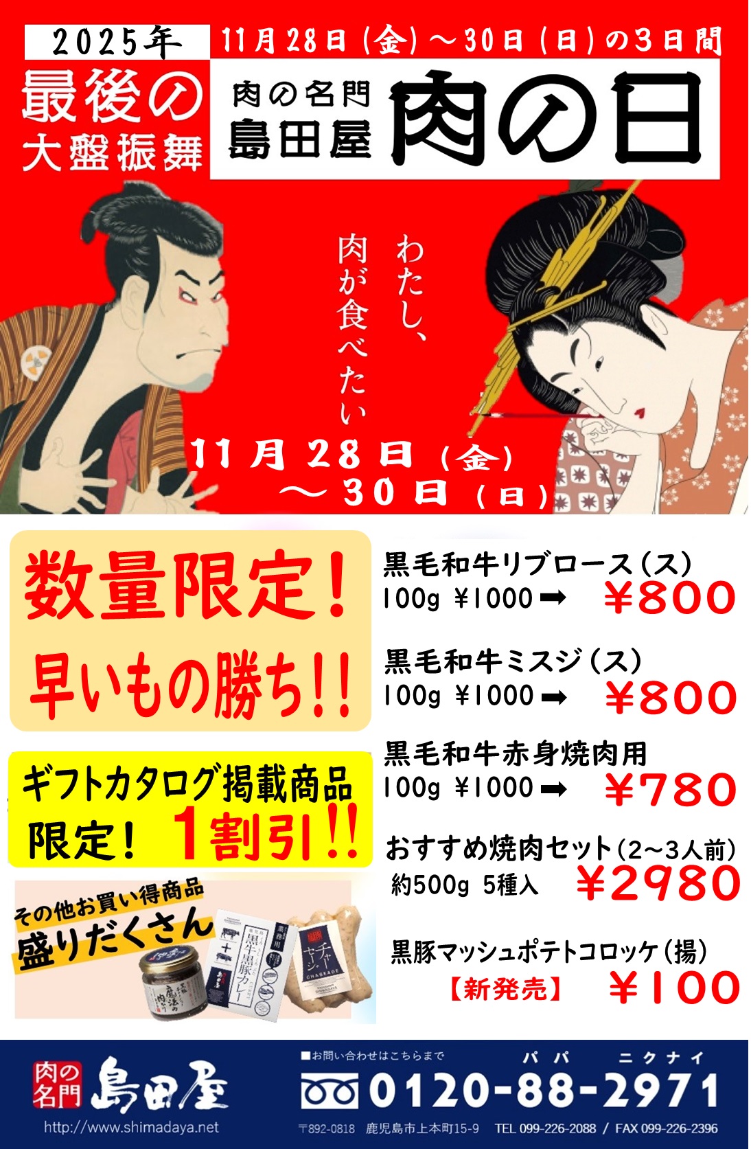 さて、11/28(金)~11/30(日)までの3日間、11月肉の日/特売イベントを開催いたします