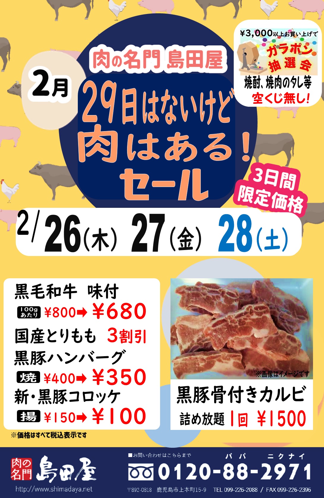 さて、2/26(木)~2/28(土)までの3日間、2月肉の日/特売イベントを開催いたします